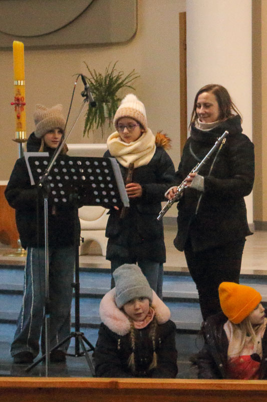 ZAŚPIEWAMY: Świec gwiazdeczko, Gore gwiazda, Lulaj, że Jezuniu, Pójdźmy wszyscy do stajenki, Przybieżeli do Betlejem, Jezusa Narodzonego, Oj maluśki, maluśki, Tryumfy Króla niebieskiego
